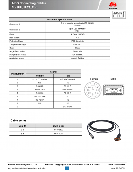 RoHS D Sub 9 Pin Male RF Feeder DB9 Connectors Made by Fined Copper Alloy For Huawei Flexible Cable AssemblyUS$ 0.01 - 0.1MOQ: 500 Pieces