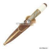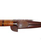 Knife With Handle in Rawhide Braided and Deer Antler Rawhide Sheath Fina.