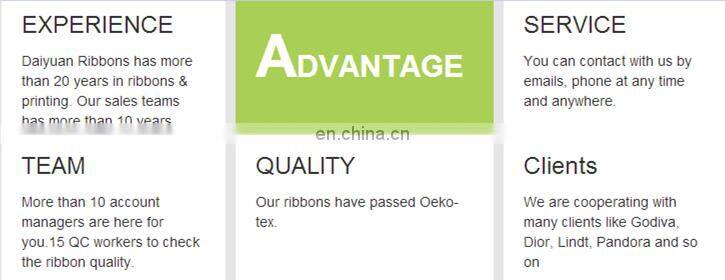 Backed with years of designing and producing experience, besides offering not only high-quality ribbons and competitive prices to worldwide customers, but also continuously design new style ribbons to satisfy all kinds of customers. Moreover, customer's exclusive designs are accepted. We warmly welcome friends from home and abroad to promote the market of international Crafts Art and Gift together.