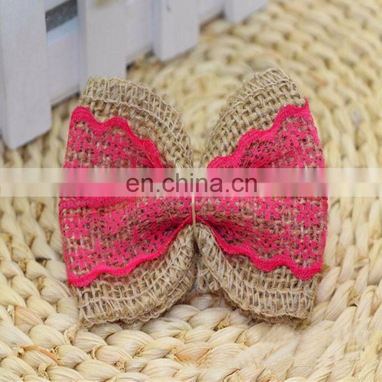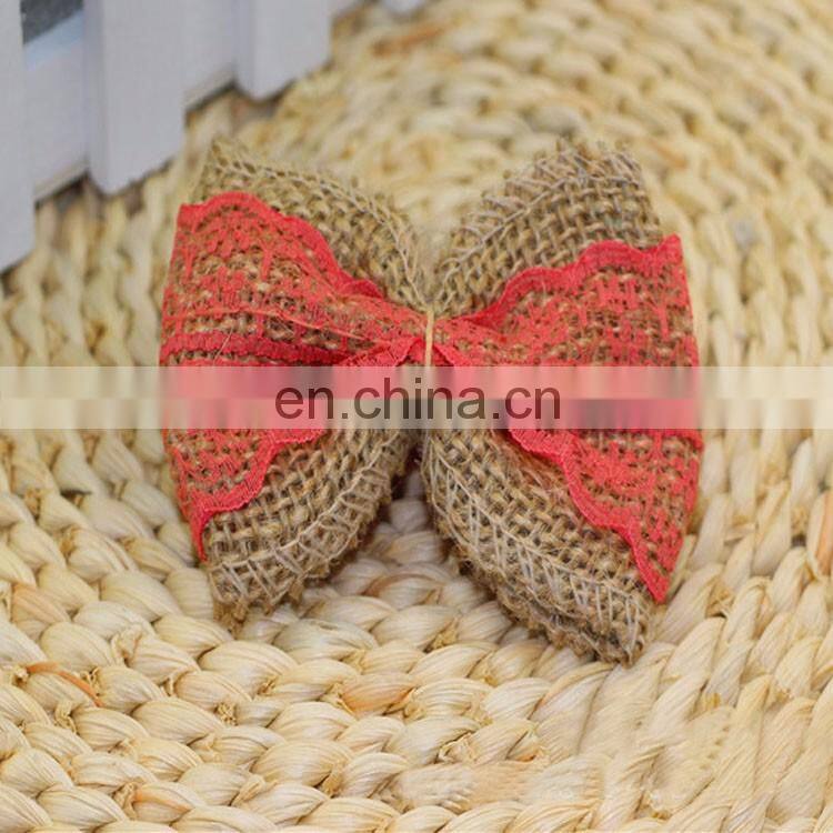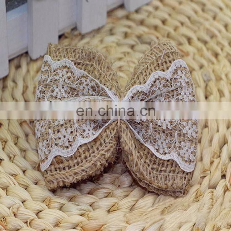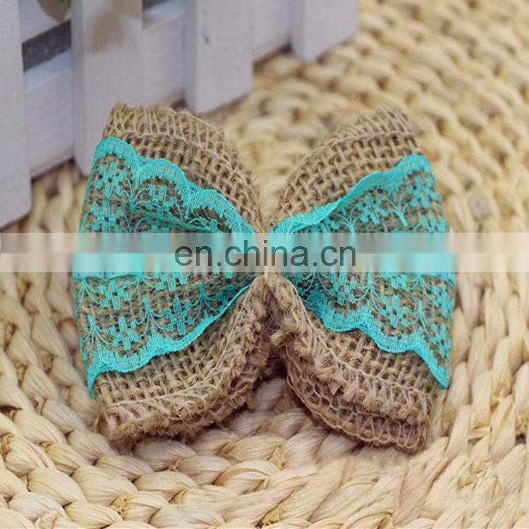 Blue Lace Jute Burlap Ribbon Bow