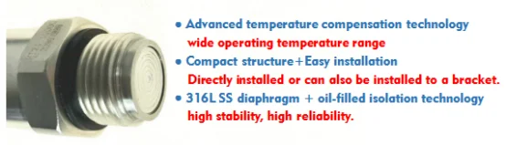 Flush Membrane Pressure Transmitter in mechanical engineering applications (eg: polyurethane equipment), medical applications (eg: pharmaceutical and other), food Machinery and beverage processing industry, and general industrial control field (eg: paper, paint, etc.).