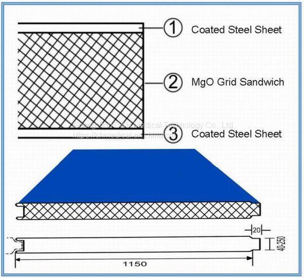 A standard MgO Grid Sandwich Material Light Coated Steel Sandwich Panel is as follow picture shows: