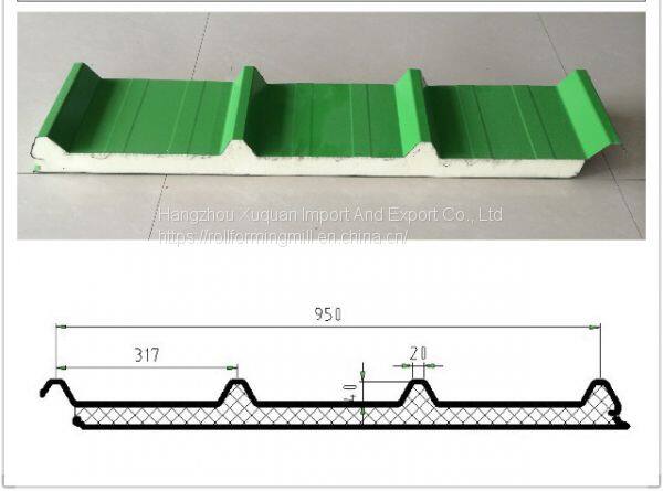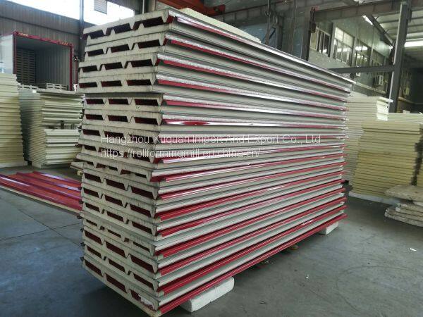 PU Sandwich panel is abbreviation of Polyurethane sandwich panel. It is laminated by galvalume or pre-painted steel sheets and polystyrene core. The board has the function of heat preservation, heat insulation and noise elimination, as well as isolating rainwater. It is widely used as the wall or roof for cold storage, industrial workshop, public building, etc.