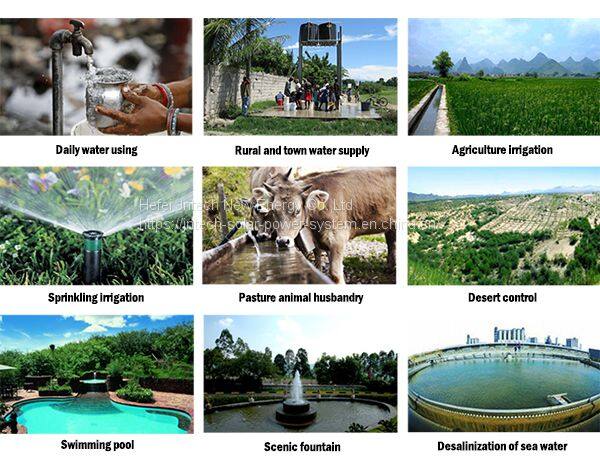 animal husbandry,rural town and village water supply,desalinization of sea water,scenic fountain etc.