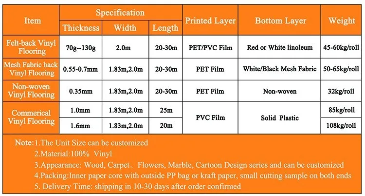 Factory Linoleum Weight 70g 100g 130g Red Felt Back Pvc Flooring on Sale