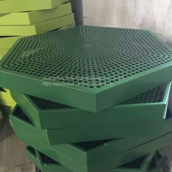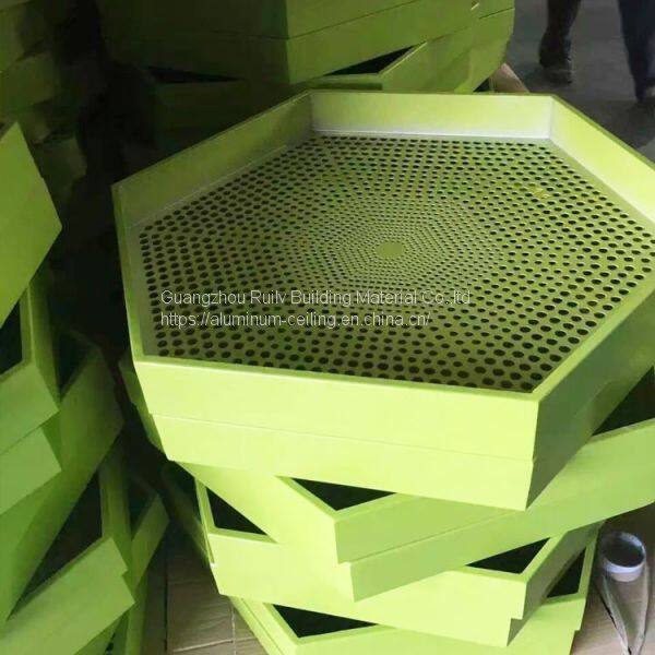 Perforation is a kind of processing technology for metal ceiling. ceiling design beautiful patterns according to the arrangement of perforated holes with powerful sound absorbing and isolating effect. We have over 40 kinds of fixed perforated types, and could be customized according to client's requirements on patterns, sound absorbing to meet the actual situation .