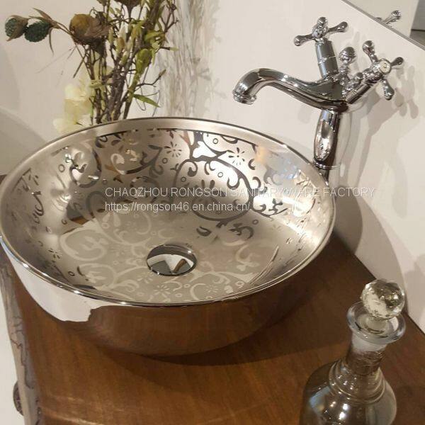 2018 New Design Good Sale Ceramic Bathroom Round Slivery Table Basin for Cabinet Design With Direct Factory Price