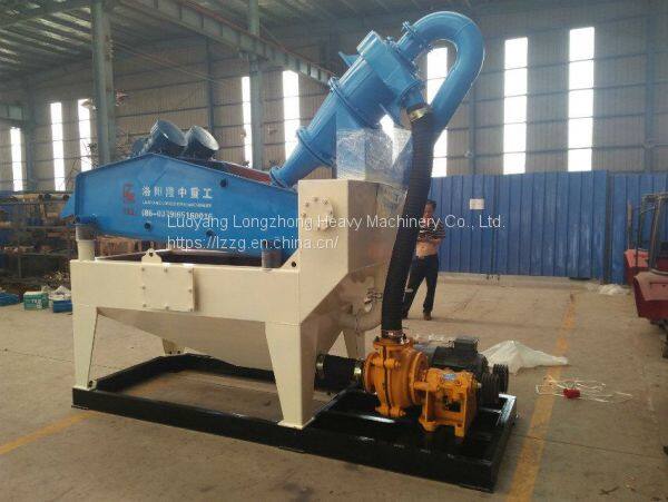 LZ series sand recycling system has absorbed foreign advanced technology, and designed combined with sand field actual situation. It is widely used in mud purification, artificial sand production line, hydropower station, sand aggregate system, glass raw material processing system, coarse slime recovery, and recycle fine material. It can effectively reduce the loss amounts of fine material; solve problems of end product such as relatively high fineness modulus and relatively low stone powder content. The fine material can be recycled as high as 95%, with incomparable technical and economic advantages.
