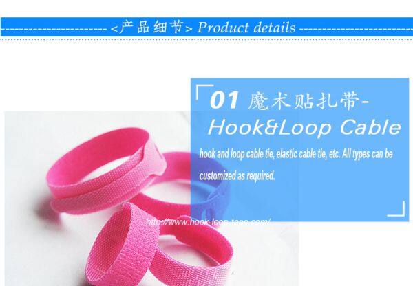 Use:Magic tape loop and hook (A + B),for composite, make the loop hook is not in the same plane.Used for wire and cable, fiber optic cable, toys, electronic appliances, etc.We can also design patterns according to customers' requirements,or supply raw materials and cutting by ourselves.Can also be printed company LOGO, web site and advertising promotions information, etc.wire arrangement, footwear, communication engineering, bags, computer wire, wire, connectors, bundle plants, etc.