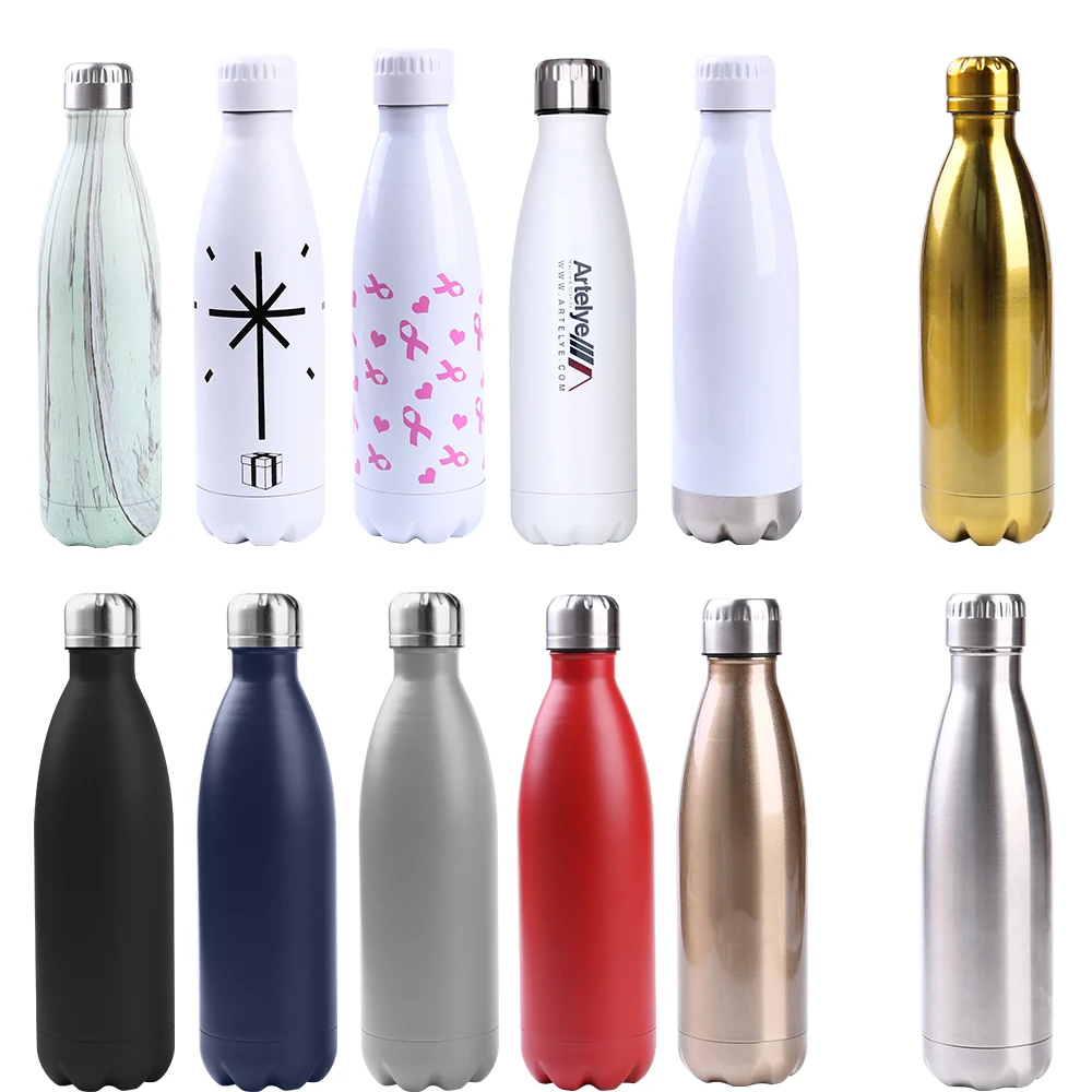 glass water bottles, plastic water bottles, aluminum water bottles, coffee mugs, travel mugs, and sports shaker water