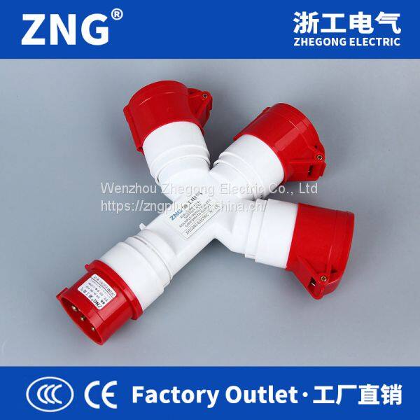 Industrial Plug and Socket 16A5P, 3-way Splitter Industrial Plug and Socket 16A 3P+N+PE