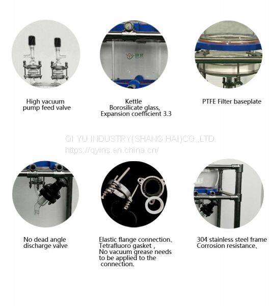 Vacuum filtration reactor can be used for filtration, filtration process, replaceable filter reactor more than the conventional one, the kettle can choose single layer or jacket, the vacuum filter is used to filter, borosilicate glass kettle, high transparency, can be observed easily, can also be equipped with mixing system. Using the PT100 temperature probe, the error will be small and the temperature measurement accuracy will be high. After the experiment is completed, the material needs to be filtered out for easy operation.
