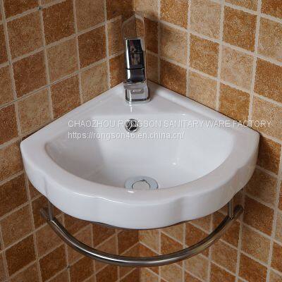 China Supplier bathroom small size sanitary ware good sales one piece wall hung hand basin triangle corner sinks
