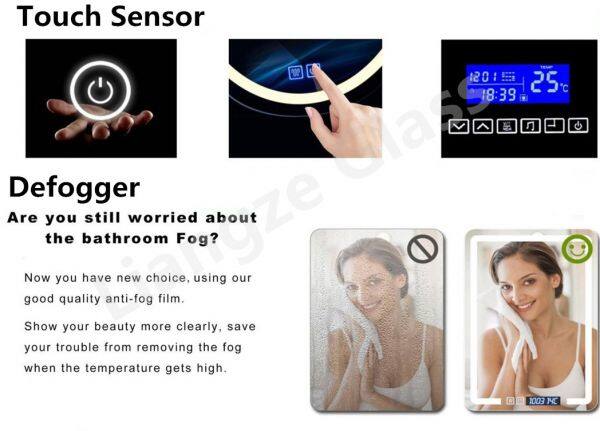 Product has passed CE certification, with Anti-fog, Waterproof, Anti-rust, Lighting,Bluetooth, Touch screen,LED Clock,Temperature Show and other functions.