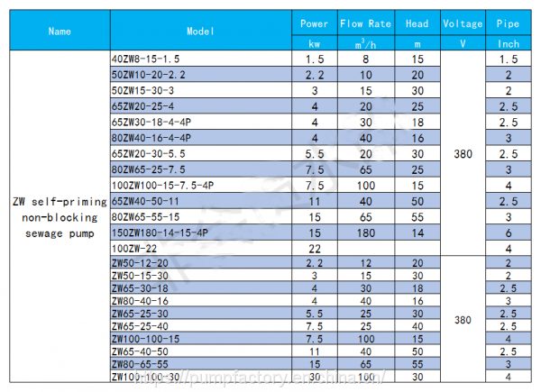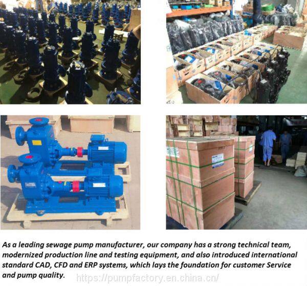 ZW self-priming non-clog submersible sewage pump/drainage pump (hereinafter called "pump") is integrative motor and pump. Which is manufactured based on absorbing domestic and foreign advanced technology and advantages. Impellor, designed with hydraulic model and made by precision casting, has the advantages of energy-saving, anti-winding and non-clogging, etc. At the same time, this sewage pump has a unique effect in the carriage of solid particles and long fibers garbage. Single or dual impellor structure ensures the sewage pump has the higher efficiency when it has bigger flow. So this kind of sewage pump is an ideal drainage pumps for industries and cities.
