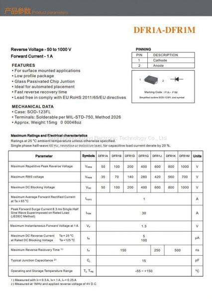 DFR1M is the Fast recovery rectifiers diodes make by Juxing