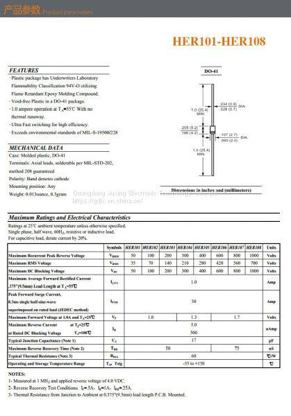HER108 is the Ultra Fast Rectifiers diodes make by Juxing
