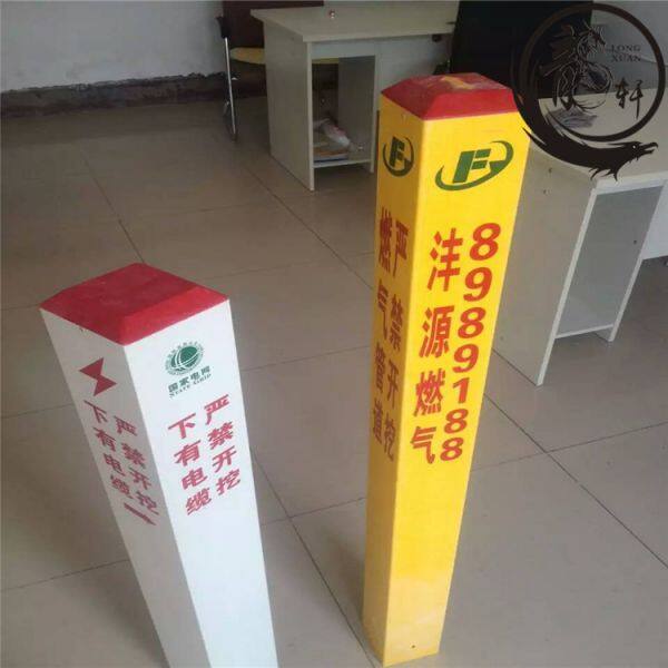 Fiber glass warning monument mark is utilized FRP pultrusio profiles, which adopt glass as reinforced materials, synthetic resin as matrix materials, and pultruded in high temperature as a whole by machine. They are impact resistant, corrosion resistance, water-proof, high strength and light weight etc. Not only they are easy to transport and install; but also they are durable which service life is 30 years at least. The are widely used in gas, oil, electricity cables, railways, water supply and other landmarks.