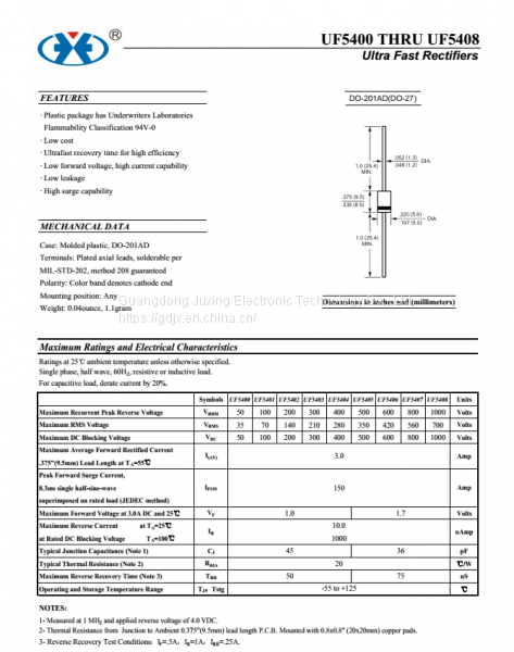 UF5408 is the Ultra Fast rectifiers diodes make by Juxing