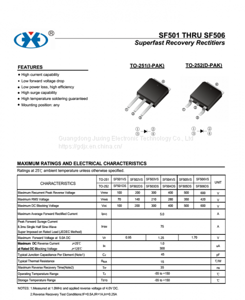 SF504DS is the Super Fast Rectifiers diodes make by Juxing