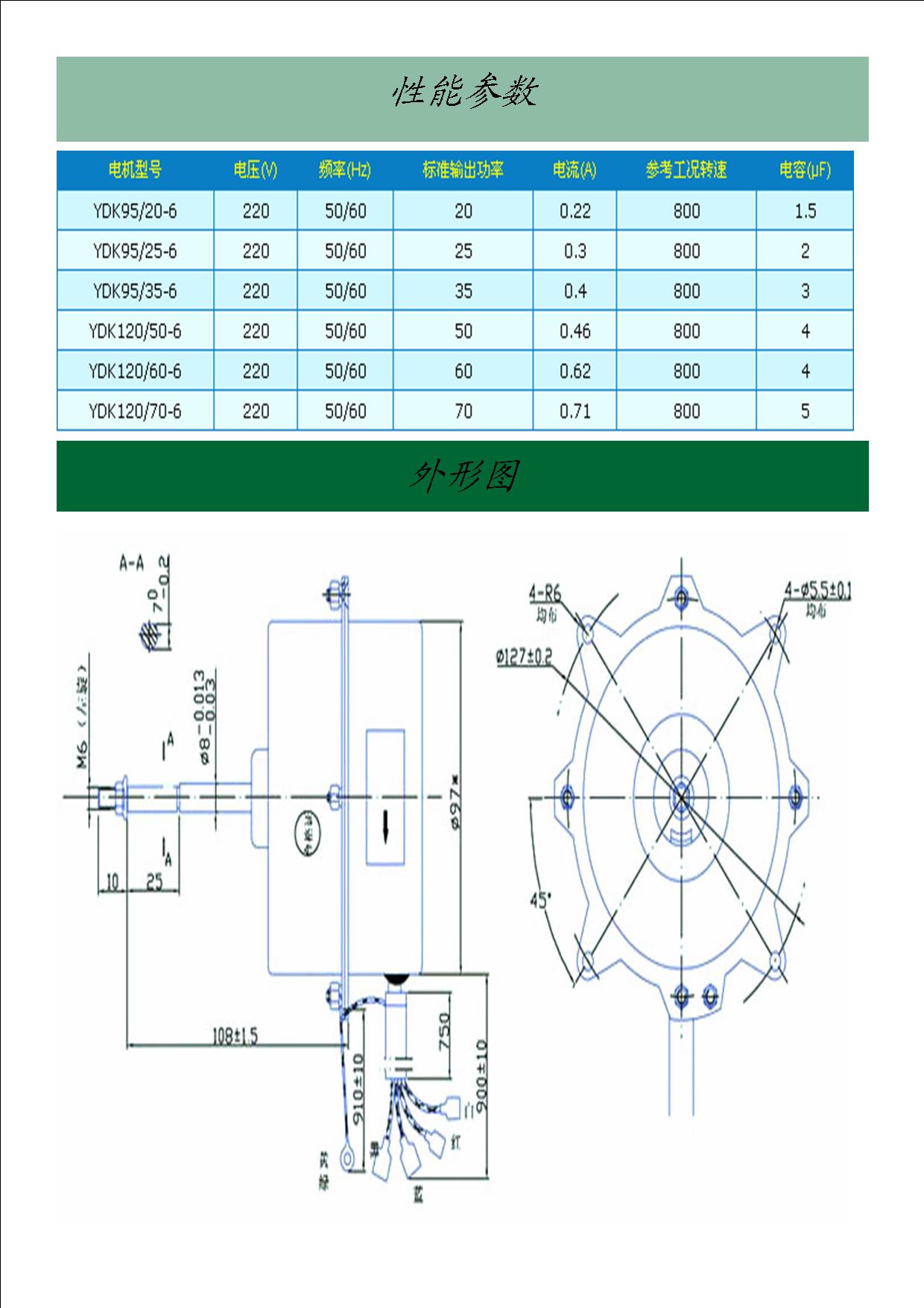 ● Special bearings for low noise, smooth running, small vibration, and aluminum alloy end caps for corrosion resistant