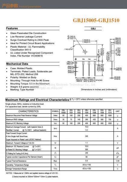 GBJ1510 is the Bridge Rectifiers diodes make by Juxing