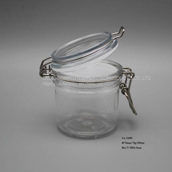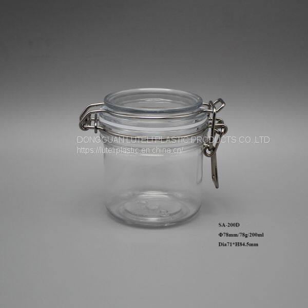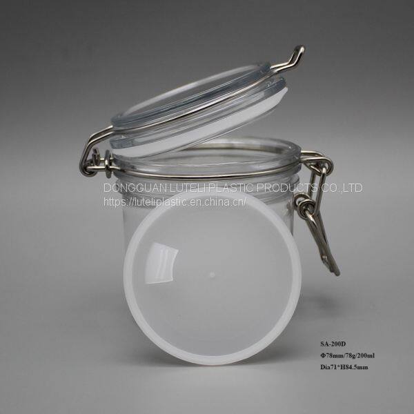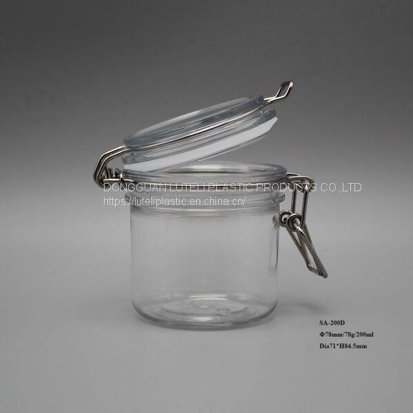 200ml Clear PET Plastic Cosmetic Packaging Pots Jars,200g Round Plastic PET Face Cream Cosmetic Bottle With Metal Clip Lid