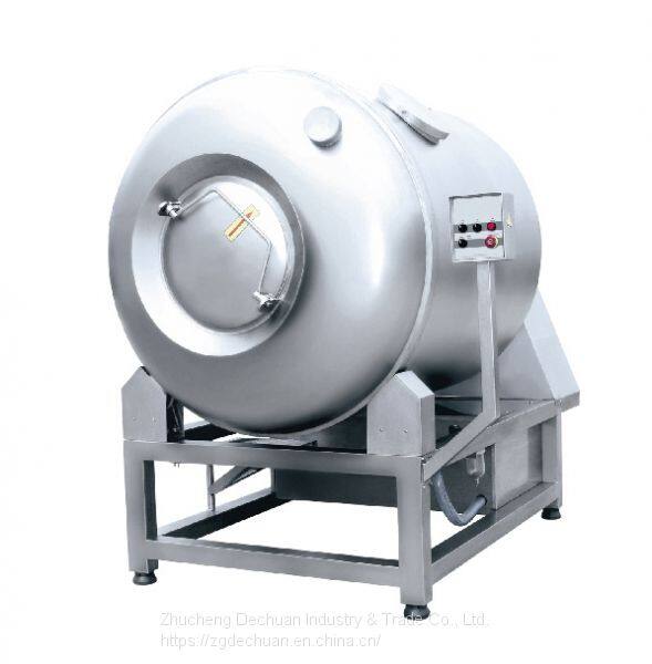 The vacuum tumbler is the main processing equipment for the production of meat products and low temperature ham. The raw meat after tenderization is rolled, pressed and marinated, and uniformly mixed with auxiliary materials, additives and the like under vacuum (the meat material is in a state of being expanded under vacuum). The protein in the meat is in full contact with the brine, which accelerates the dissolution and interaction of the protein to increase the adhesion between the meat and the meat, and can make the meat color, improve the tenderness of the meat and maintain the water. Improve the quality of the meat. The optimum operating temperature of the vacuum tumbler is 0 to 3℃. To ensure optimum temperature, a refrigeration system can be provided.
