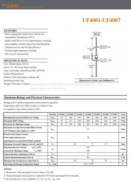 UF4007 is the Ultra Fast rectifiers diodes make by Juxing