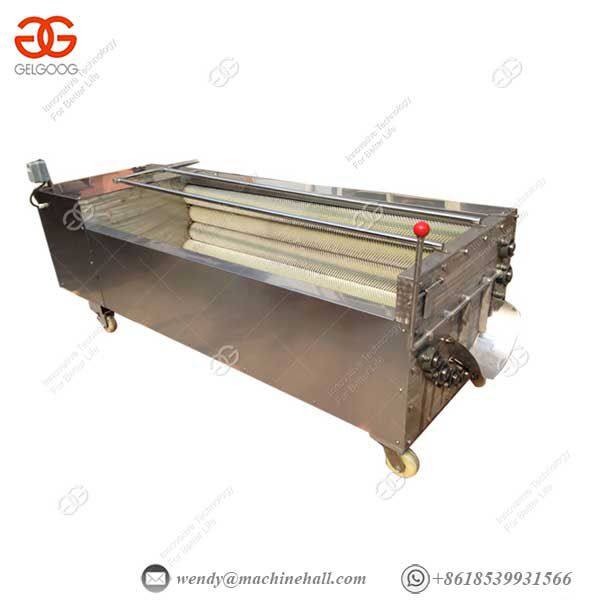 It is suitable for the sorting and cleaning of carrots, potatoes and other rhizome vegetables and fruits as well as seafood meat materials. (Peeling, sediment removal, hair removal, etc.) It is conveyed and cleaned by food-grade brush. It can be used with rotary brush and high-pressure spraying. The cleaning effect is good and the stains on the surface of fruits and vegetables can be thoroughly cleaned. Designed according to the processing requirements of fruits and vegetables, peeling machine is used for washing and peeling round and long fruits and vegetables. It is suitable for cleaning and peeling root and stem materials such as carrot, white radish, potato, sweet potato, apple, orange, onion, yam, horseradish and ginger. It has the characteristics of large effective volume, high efficiency, water saving, continuous cleaning, simple operation and long service life. The material of brush roll has been treated by special technology, durable and good wear resistance.