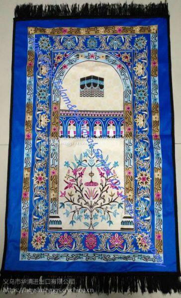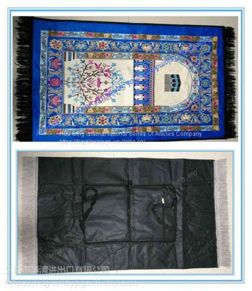 worship blanket bag type Muslim praying mat, PVC waterproof fabric, velvet carpet surface printing, specification: 108cmX65cm, packing: 60 / box. The package can be filled with holy scriptures, worship compass and other religious supplies, convenient, practical, easy to carry.