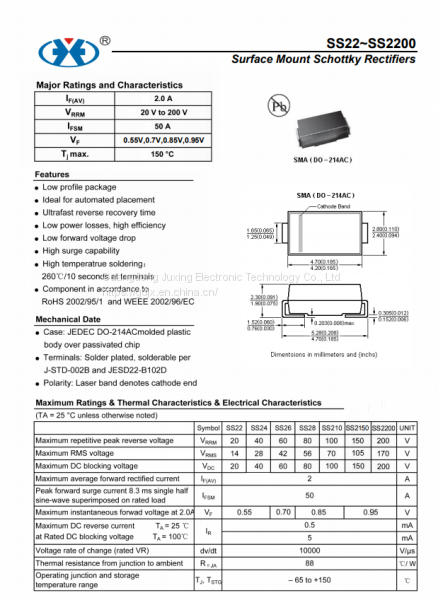 SS220 is the surface mount schottky barrier rectifiers diodes make by Juxing