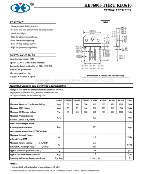 KBJ610 is the Bridge Rectifiers diodes make by Juxing