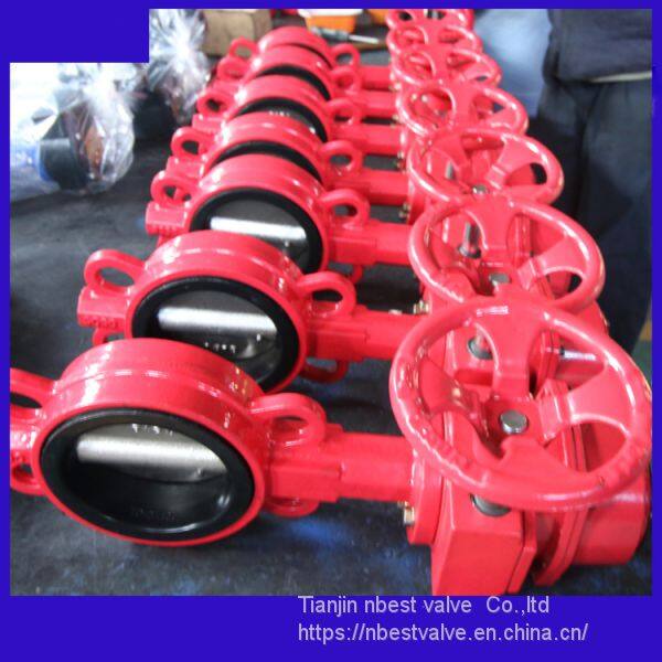 DN100 4inch signal worm gear wafer butterfly valve for fire fighting
