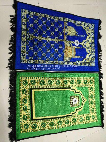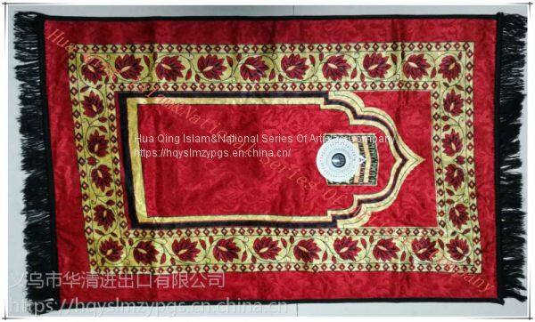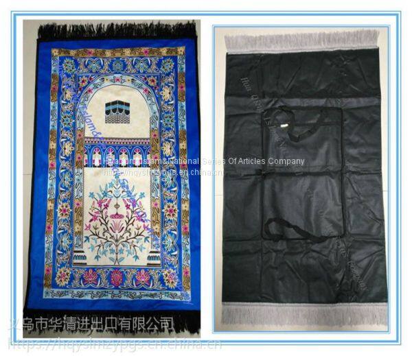 worship blanket bag type Muslim praying mat, PVC waterproof fabric, velvet carpet surface printing, specification: 108cmX65cm, packing: 60 / box. The package can be filled with holy scriptures, worship compass and other religious supplies, convenient, practical, easy to carry.
