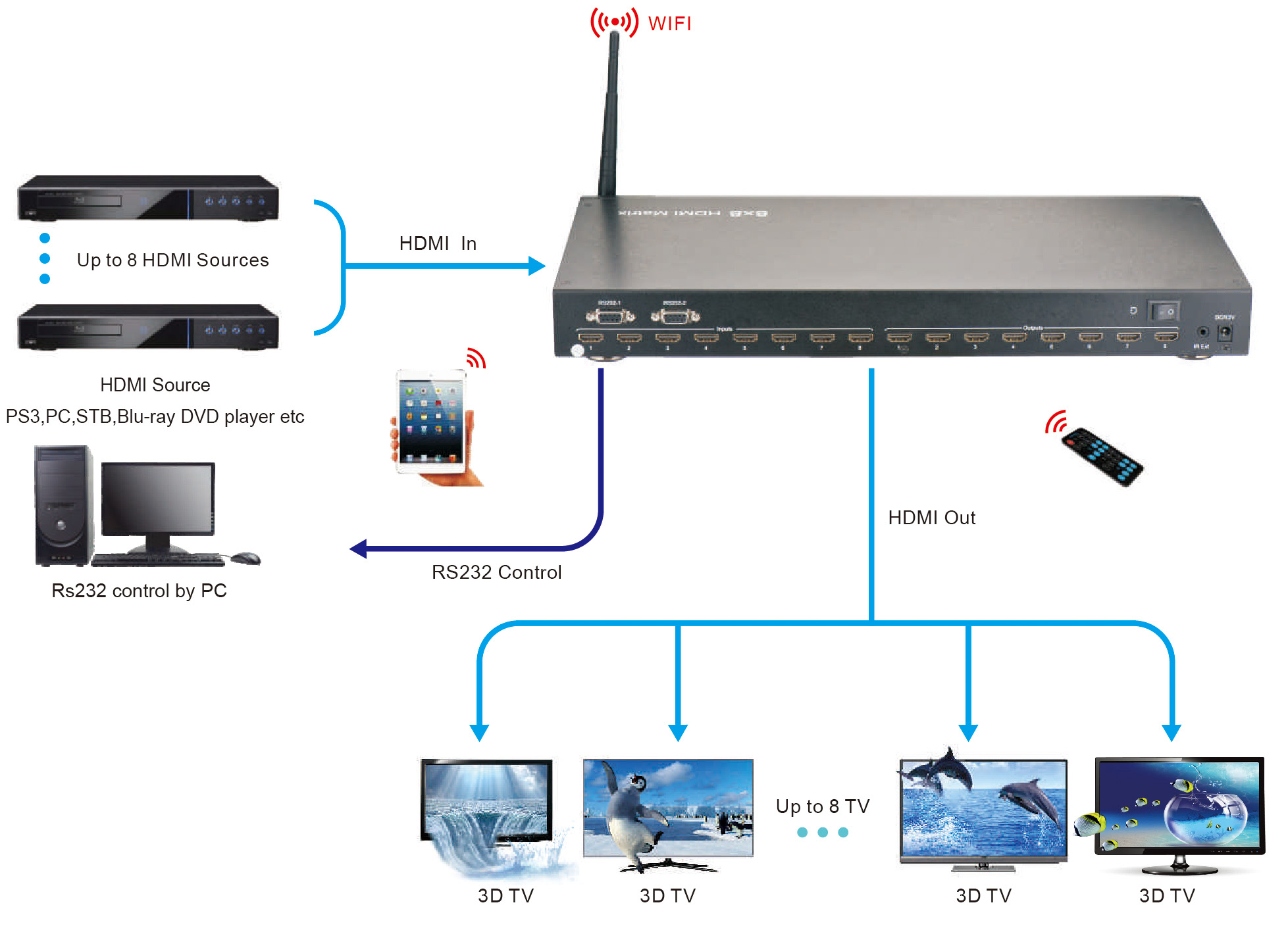 8x8 HDMI Matrix With WIFI,RS232