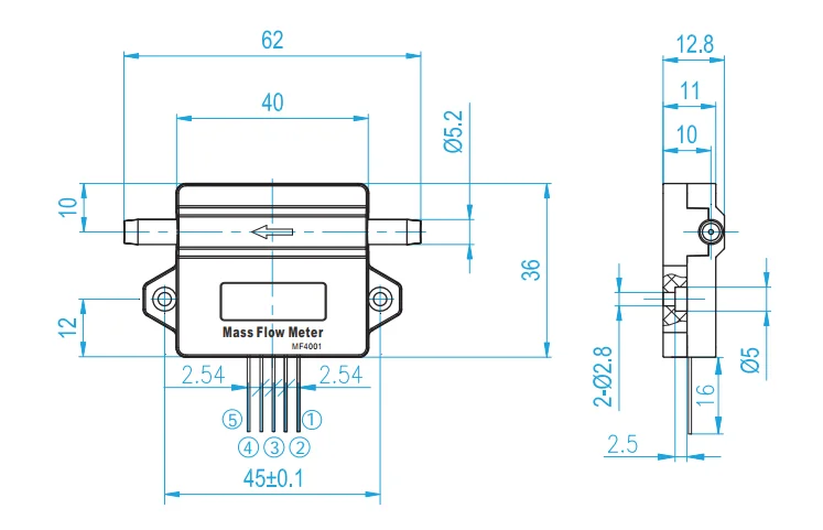 MF4001 RS485 Output Mass Digital Air, Gas Flow Sensor | ||