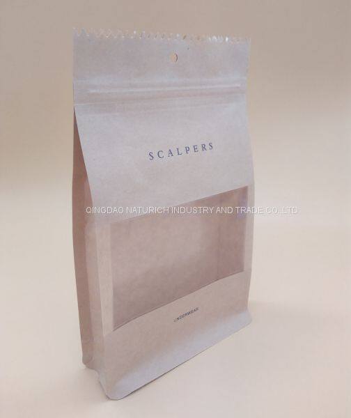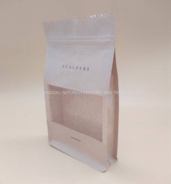 Custom Printing Flat Square Bottom Side Gusset Quad Seal Bags With Brown Kraft Paper Clear Plastic Window Packing PouchUS$ 0.1 - 0.3MOQ: 10000 Pieces
