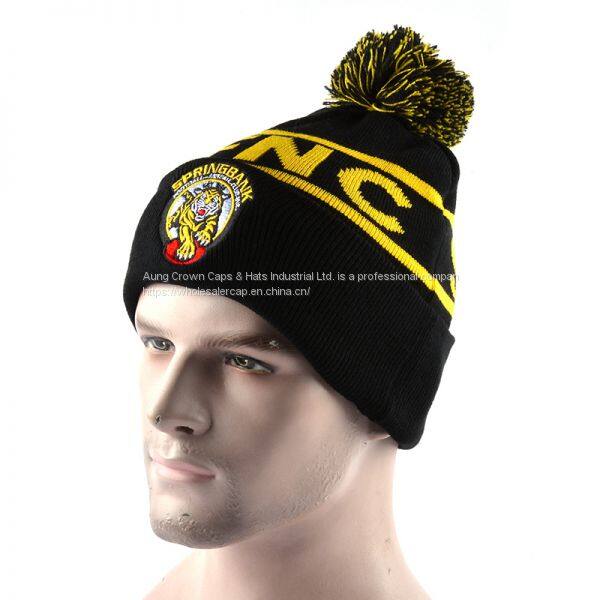 100%Acrylic Cheap Fur POM POM Beanies Knitted Hats