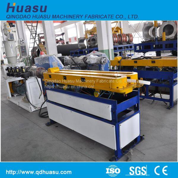 designed and developed by Qingdao HUASU Machinery Fabricate Co., Ltd adopt newest design concept, using well known brand electrical components, enhanced line stability which can be used to produce corrugated pipes of PE,PP,PVC,EVA continuously, as well as PA corrugated pipes. This pipe extrusion machine adopts gears to run moulds and templates so as to realize water circulating cooling and air cooling of the products, which ensures high-speed molding, even corrugation, smooth inner and outer pipe wall.