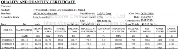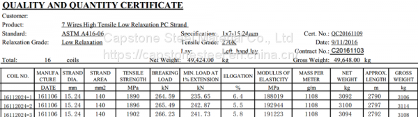 STANDARD ASTM 416 /A416M 7 Wire Low Relaxation pc Steel Wire Strand