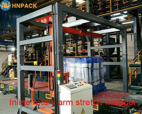 In-line Automatic Rotary Arm Pallet Stretch Ring Wrapping Machine For Bags