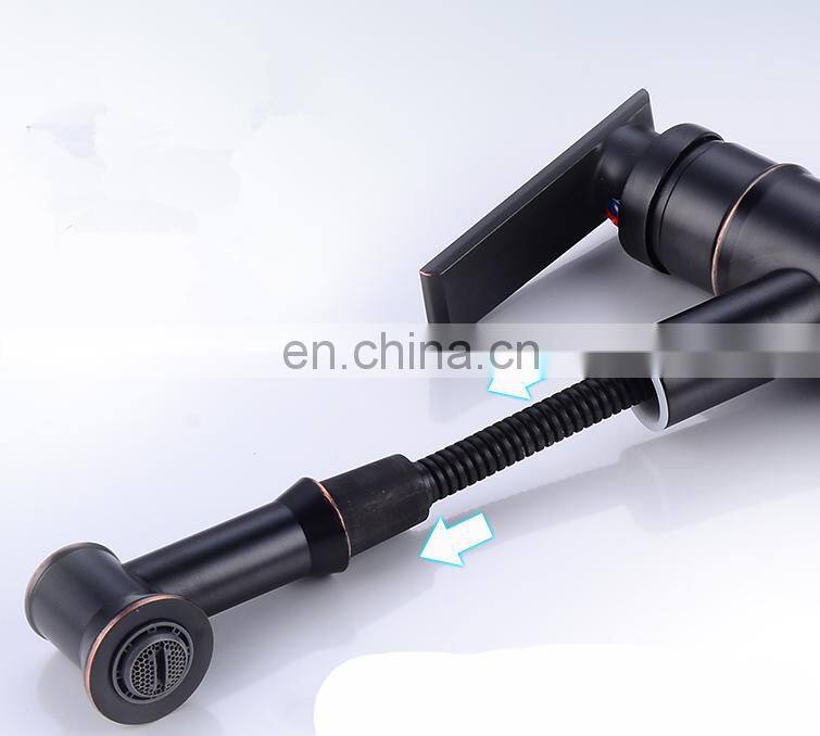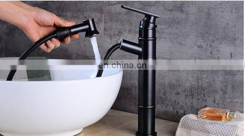 Pull down Black vintage Lavatory Basin Sink Faucet pull out basin mixer tap for Above Counter Basin
