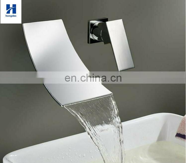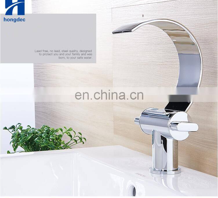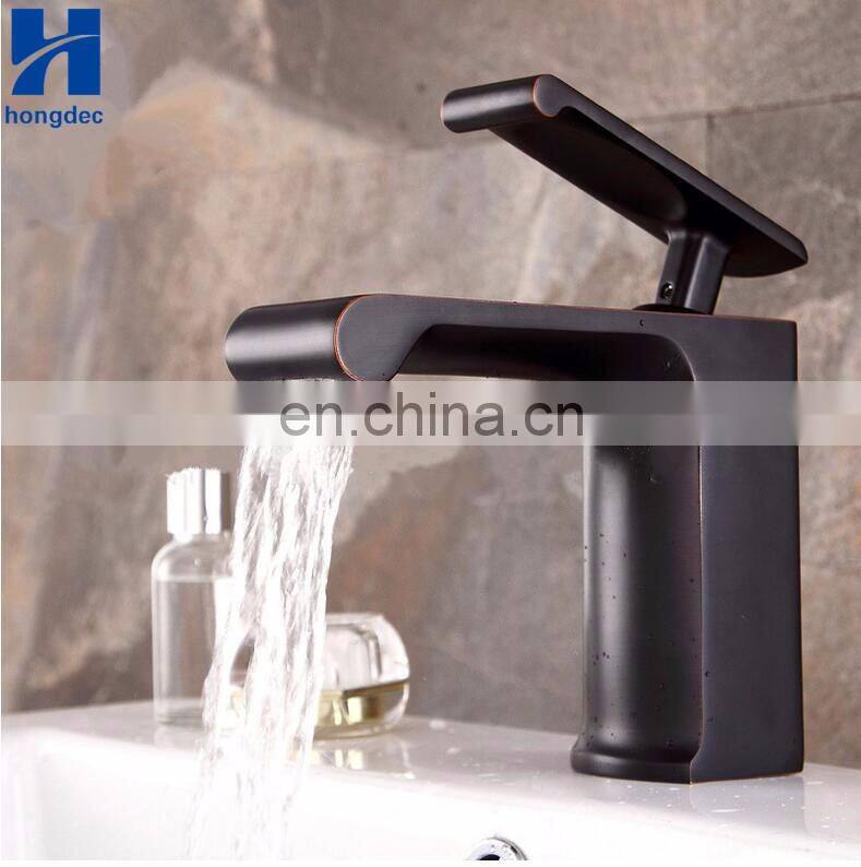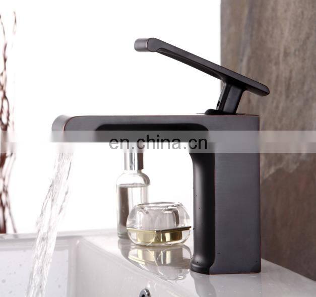 Modern Single Handle Waterfall Deck Mounted Square Sink Faucet Bathroom Brass Basin Tap