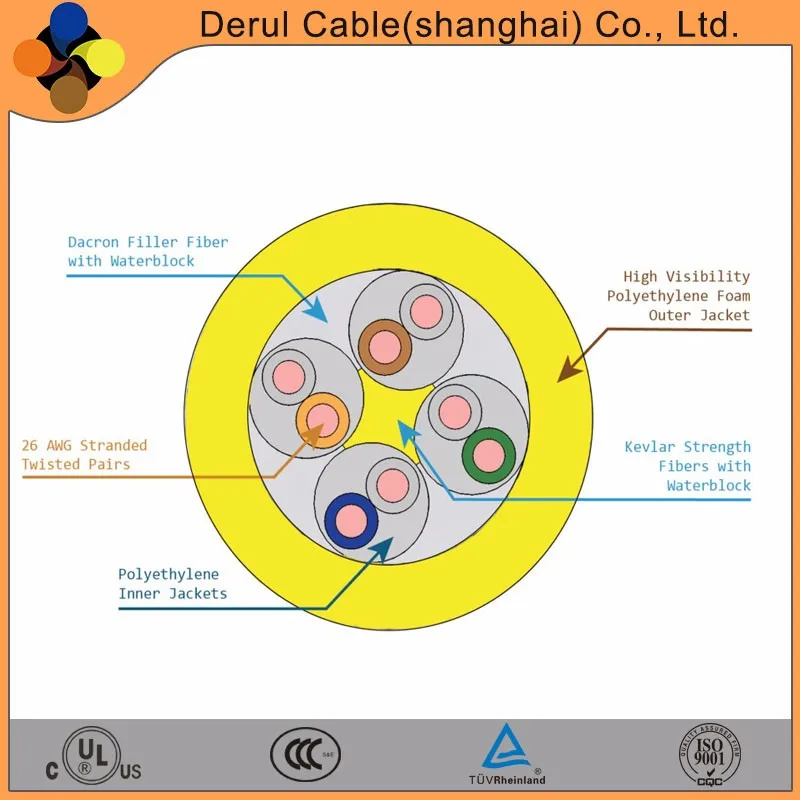 Derul Cable is able to design and manufacture Remotely Operated Vehicle (ROV) tethers. Power & signals are integrated into a cable structure, so ROV tethers can be used to transmit both electricity and signal. ROV tethers normally resort to coaxial and twisted pairs to achieve signal transmission. The cable which connects the underwater vehicle with the controller significantly affects its performance, so it must ensure stable signal transmission. The neutrally buoyancy helps vehicle run smooth with less water resistance and loading.