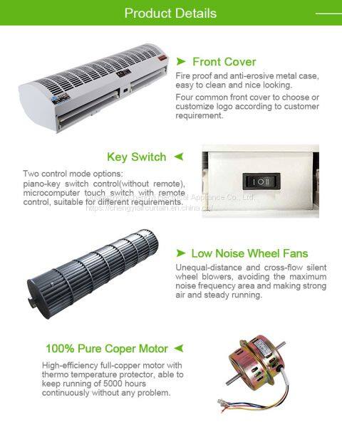 Adopting the unequal-distance and cross-flow silent wheel blowers, avoiding the maximum noise frequency area, our air curtains can make strong wind and run steadily.