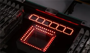3. after picking the component, the head places the component exactly by different visual identification CCDs (high speed CCD and single high definition chip recognition CCD).