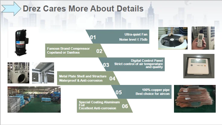 Guangzhou Drez Exhibition Co., Ltd, is a manufacturer of portable air conditioner, central air conditioner, ductable air conditioner and water chiller. Packaged air conditioning systems are all designed to be the best solution for outdoor event temporary cooling with easy installation, efficiency cooling, and minimum operational and installation cost.