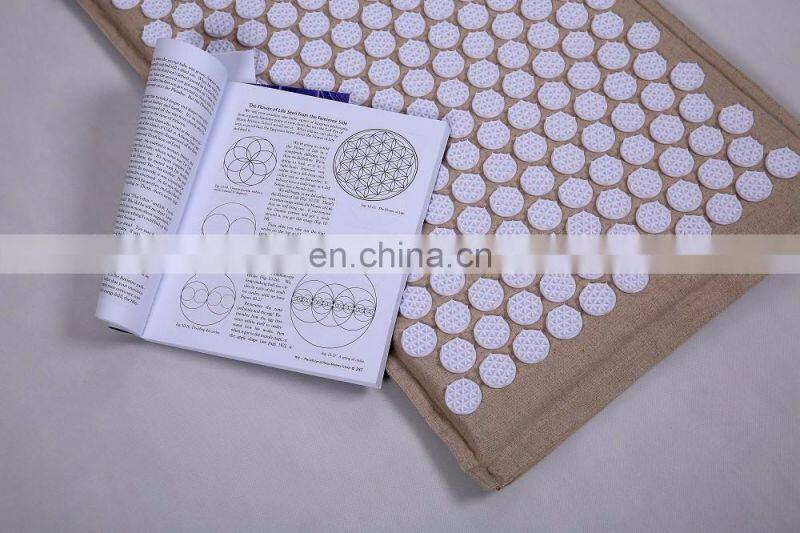The acupressure mat has been very popular in Scandinavia since 2009. It is used to cure pain of the back, the neck and other parts of the body. It is used to keep your body, mind and soul in balance, in which the body stays at an optimal healthy status. It also is named as spike mat, nail mat, acupuncture mat, and needle mat. It is consist of different flower (disc), fabric and stuff. The price varies according to the combination of different parts. The key part of the product is the acupressure flower. There are many kinds of shape of the acupressure flowers. Currently, the round shape,triangle,octagon,hexagon and lotus flower are the most popular shape in the market. We just release a creative new collection flower shape, named "the flower of life".