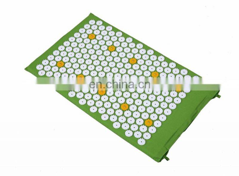 The acupressure mat has been very popular in Scandinavia since 2009. It is used to cure pain of the back, the neck and other parts of the body. It is used to keep your body, mind and soul in balance, in which the body stays at an optimal healthy status. It also is named as spike mat, nail mat, acupuncture mat, and needle mat. It is consist of different flower (disc), fabric and stuff. The price varies according to the combination of different parts. The key part of the product is the acupressure flower. There are many kinds of shape of the acupressure flowers. Currently, the round shape,triangle,octagon,hexagon and lotus flower are the most popular shape in the market.